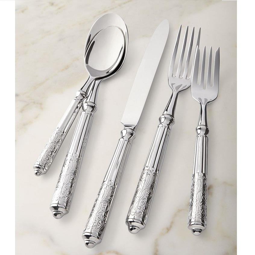 Conception de finition ustensiles de cuisine en acier inoxydable ensemble de couverts entièrement en métal conception argentée outils de couverts couverts brillants ensemble de couverts