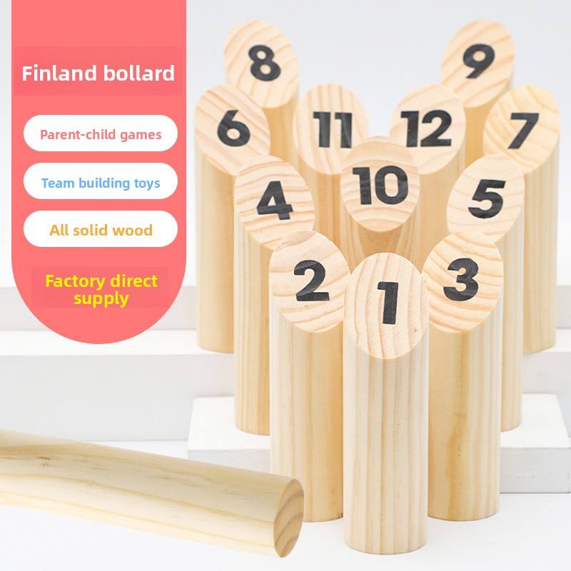Finnish Skittles Wooden Block Tossing Game Set | Upgraded Scoreboard | Chitu Brand Outdoor Lawn & Beach Toys for Family Ages 5+