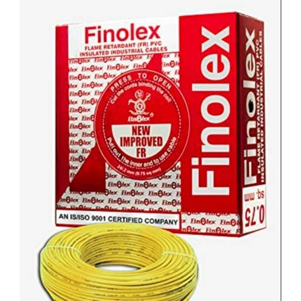 Finolex 0.75 Sqmm FR PVC Insulated Copper Single Core Yellow House Wires 45m Roll Length RoHS Certified Made in India