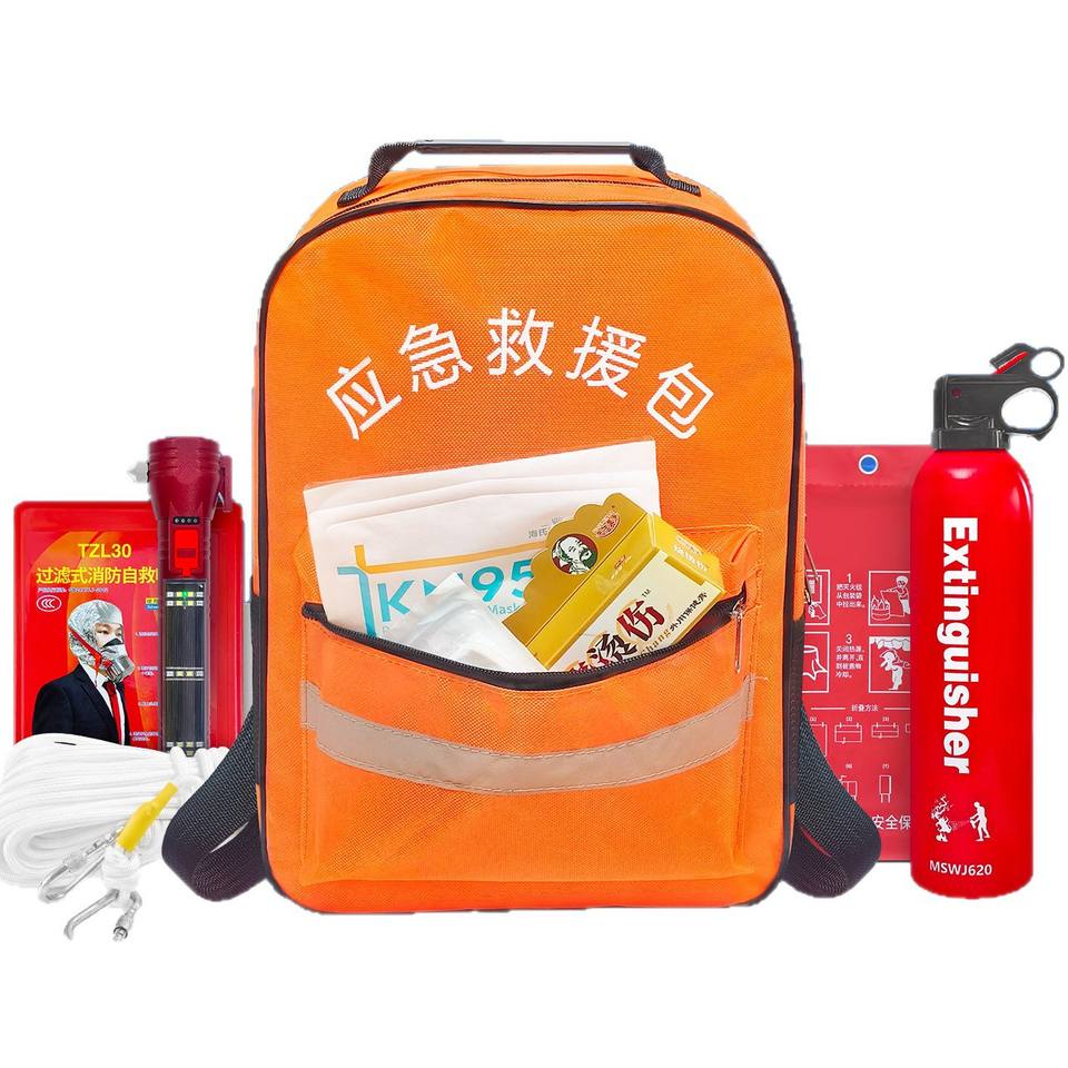 Trousse de secours incendie, sac à dos d'urgence portable pour la maison, le bureau et les véhicules, avec extincteur et équipement de sécurité