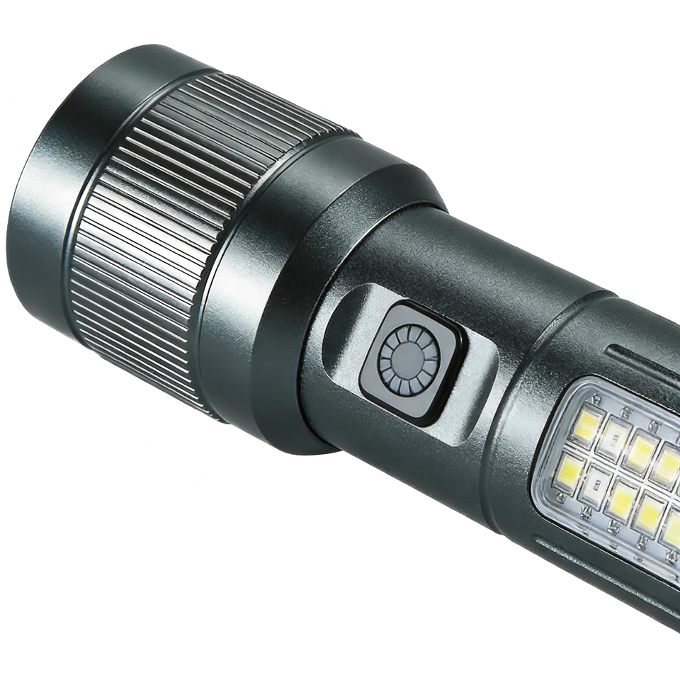 Lampe torche multifonctionnelle de secours anti-explosion, zoom télescopique, ultra-mince, haute luminosité, lumière d'avertissement COB d'urgence