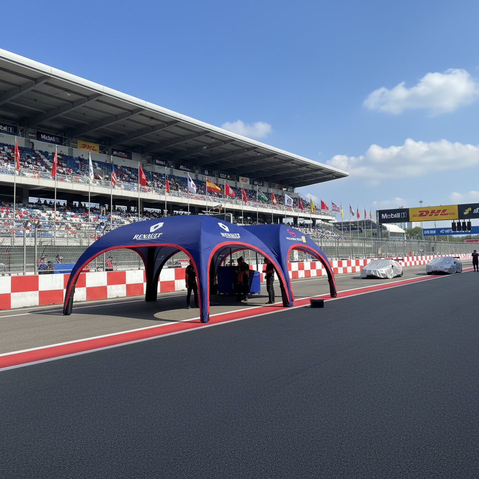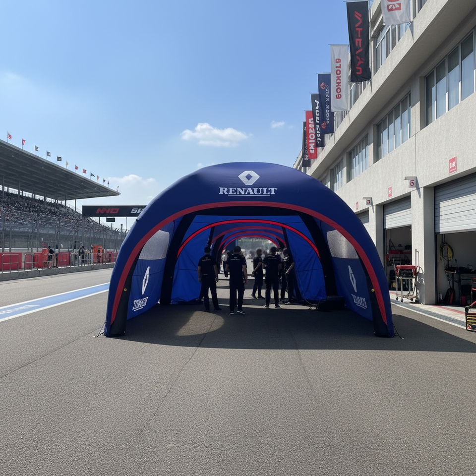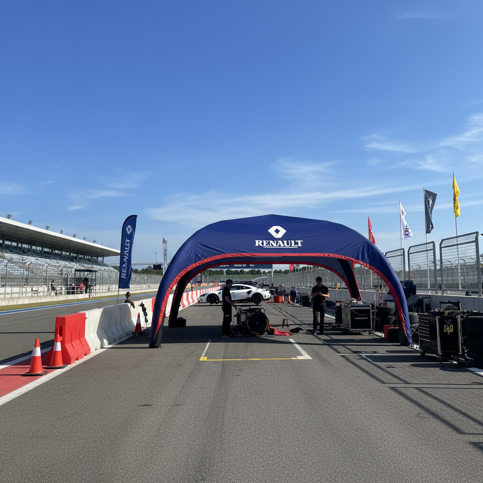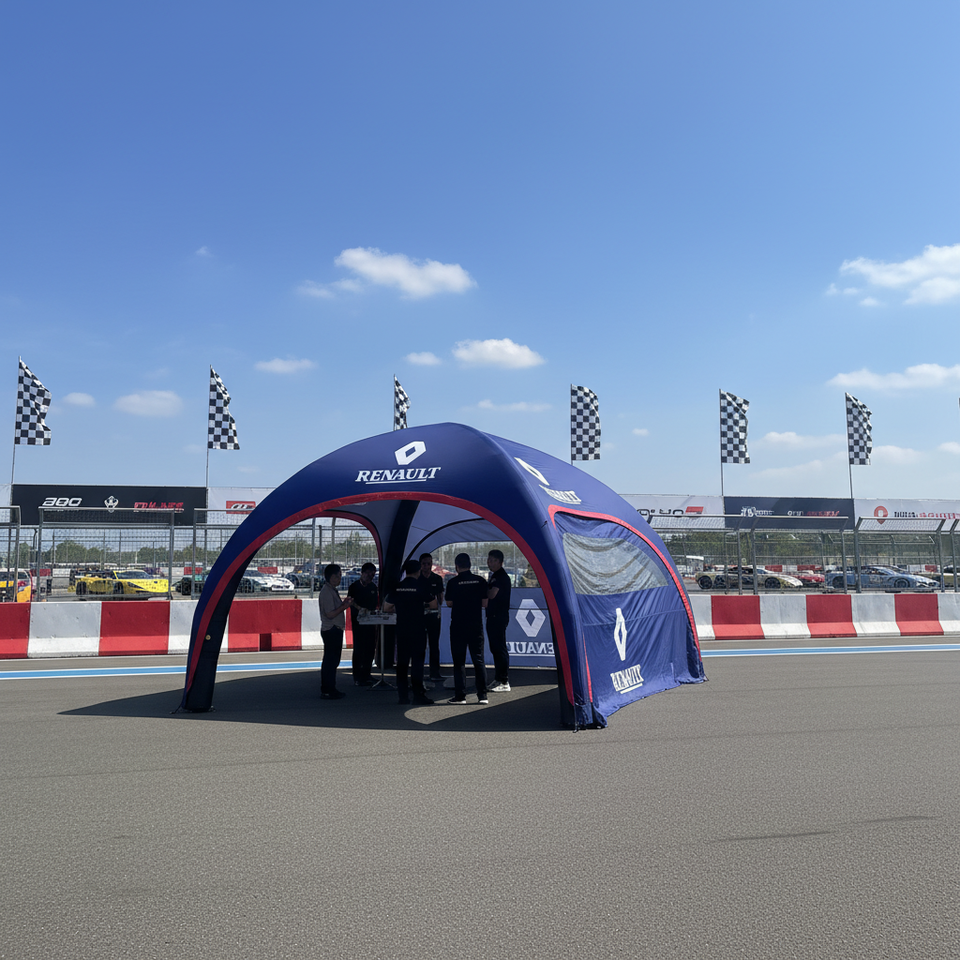 Tente Gonflable Ignifuge pour Showroom Automobile, Tente Gonflable pour Activation de Marque Motorsport, Auvent Imperméable pour Club de Course, Sponsor