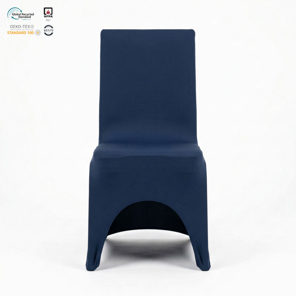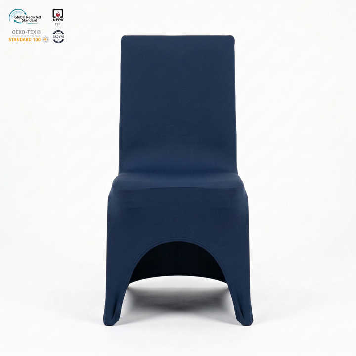 Housse de chaise extensible ignifuge bleu marine et rouge pour banquets d'hôtel, en spandex, pour salle de séminaire