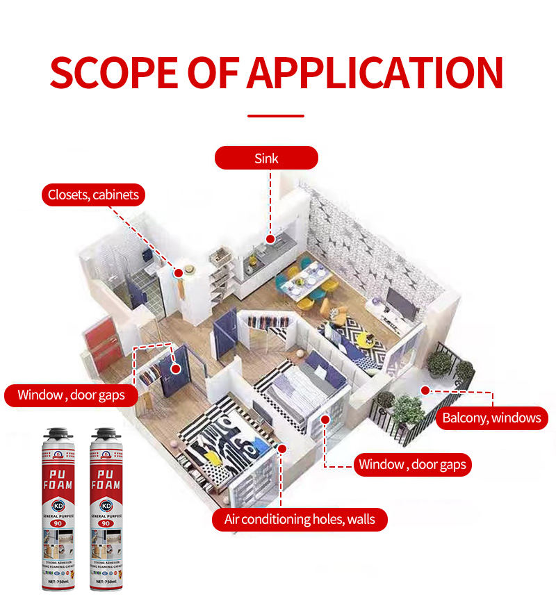 Application:Colmatage d'interstices, isolation, protection contre le feu, installation de portes/fenêtres