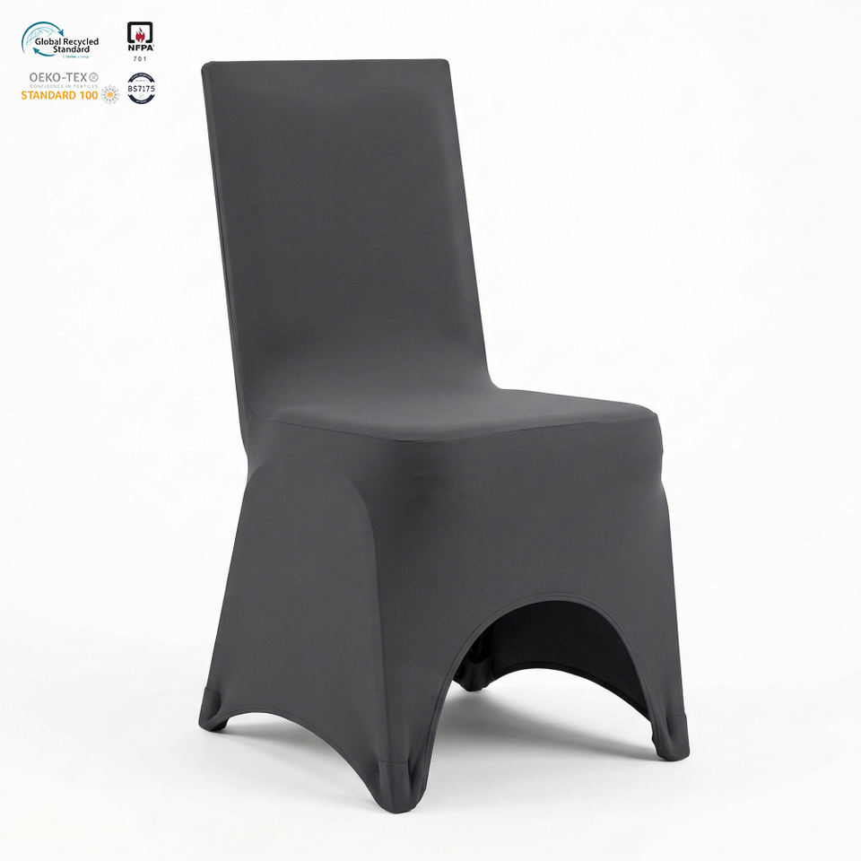 Housse de chaise extensible ignifuge en spandex argenté pour hôtel, événementiel et salon professionnel