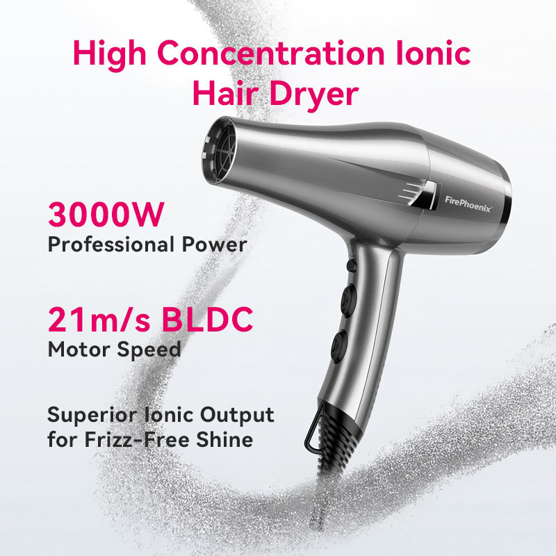 Sèche-cheveux ionique haute concentration FirePhoenix F1Max Pro, moteur BLDC 21 m/s, 3000 W, outil de coiffage professionnel avec câble de 3,5 m
