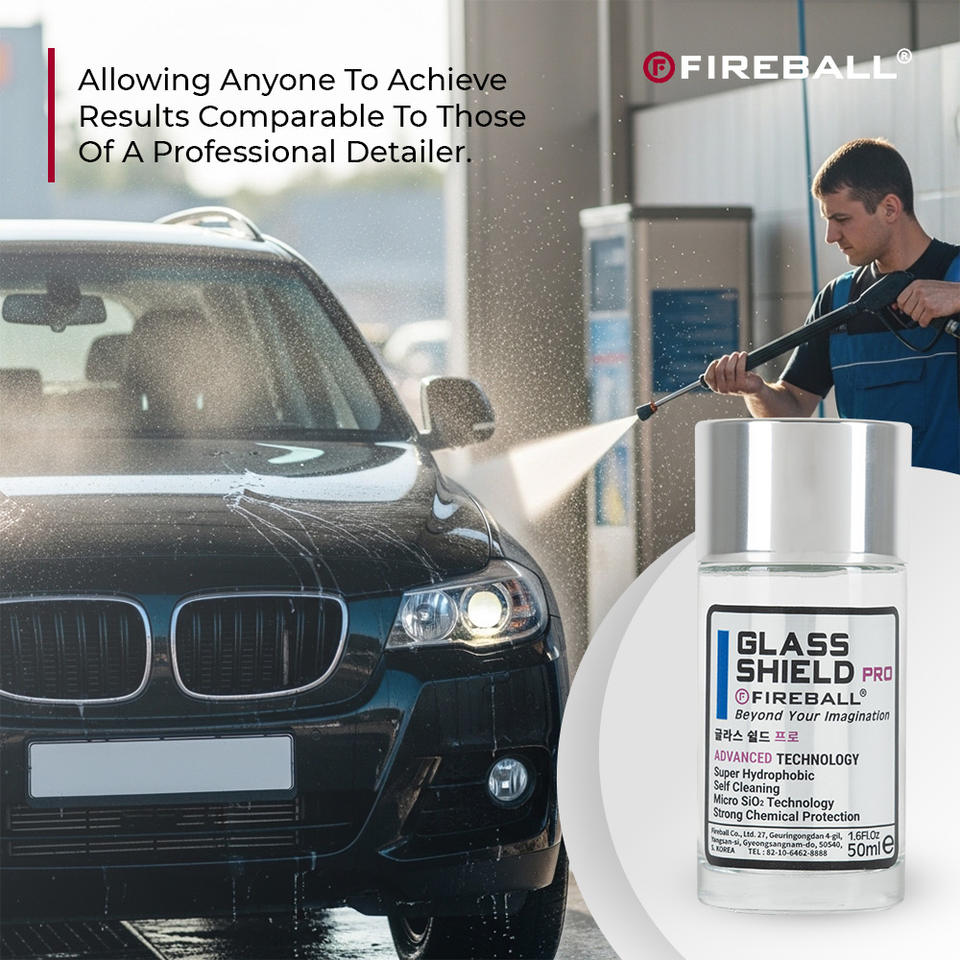 Fireball Ceramic Glass Shield Pro 50ml Revêtement de verre hydrophobe avancé Fort effet de goutte d'eau Durabilité 1 an