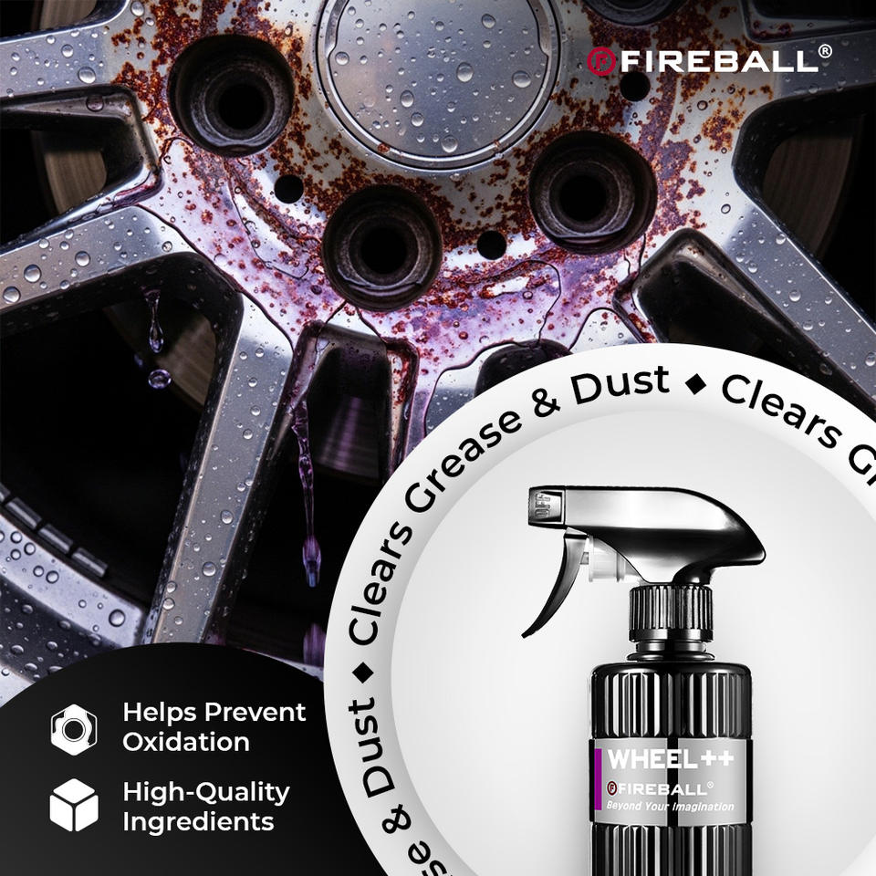Nettoyant pour jantes Fireball Wheel ++ 500ml, solution dégraissante haute performance pour un nettoyage en profondeur des jantes en alliage/peintes/revêtues, élimine les saletés.