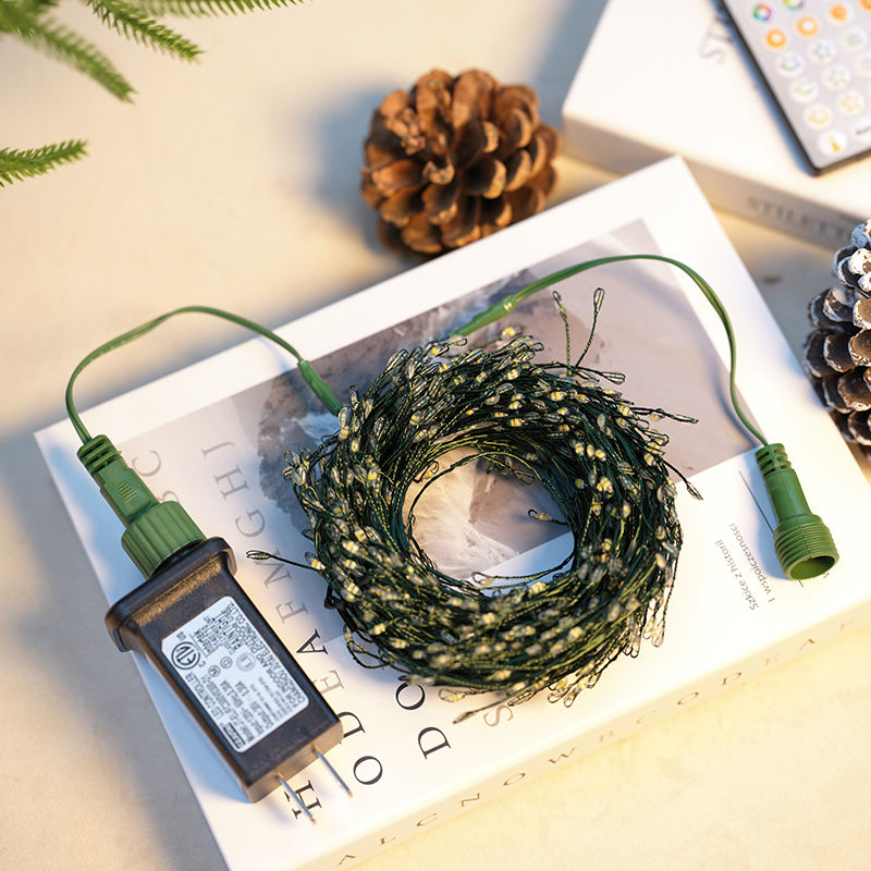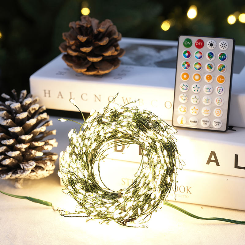 Guirlande lumineuse LED de Noël avec télécommande, fil de cuivre vert foncé pour la décoration de l'arbre de Noël dans le salon