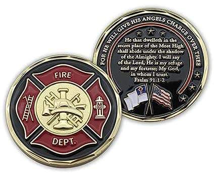 Pompier Challenge Coin Pocket Jeton d'appréciation et de protection Mon Dieu en qui je fais confiance Pièce plaquée or