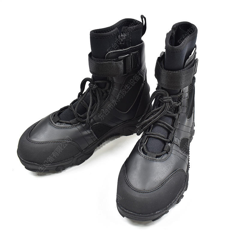 Bottes de sauvetage aquatique pour pompiers, mi-hautes, semelle en caoutchouc, cuir néoprène, bout rond, chaussures de travail de protection pour l'extérieur