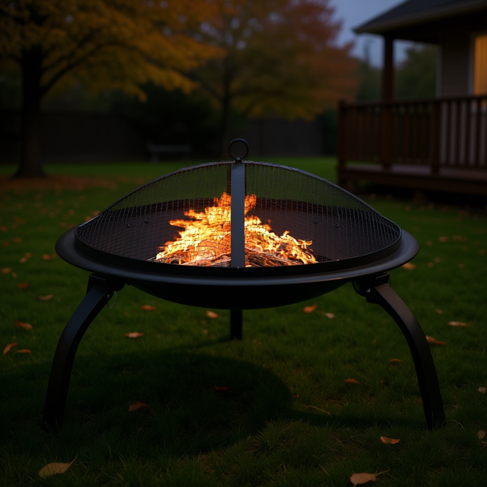 Brasero en acier Firefly 22 pouces pour extérieur, à bois, avec pique à bois, portable et autoportant