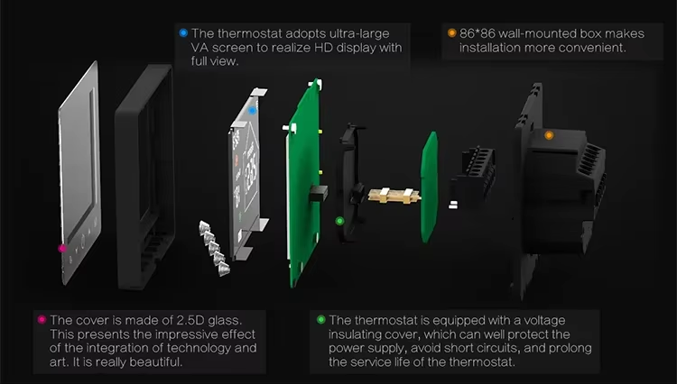 Thermostat de chauffage par le sol en matériau ABS ignifuge R9W.716 AC Contrôleur de température intelligent pour utilisation dans les salles de bain d'hôtel Moderne