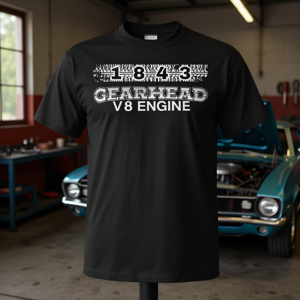 T-shirt automobile Gearhead V8 Engine pour hommes, noir, 18436572