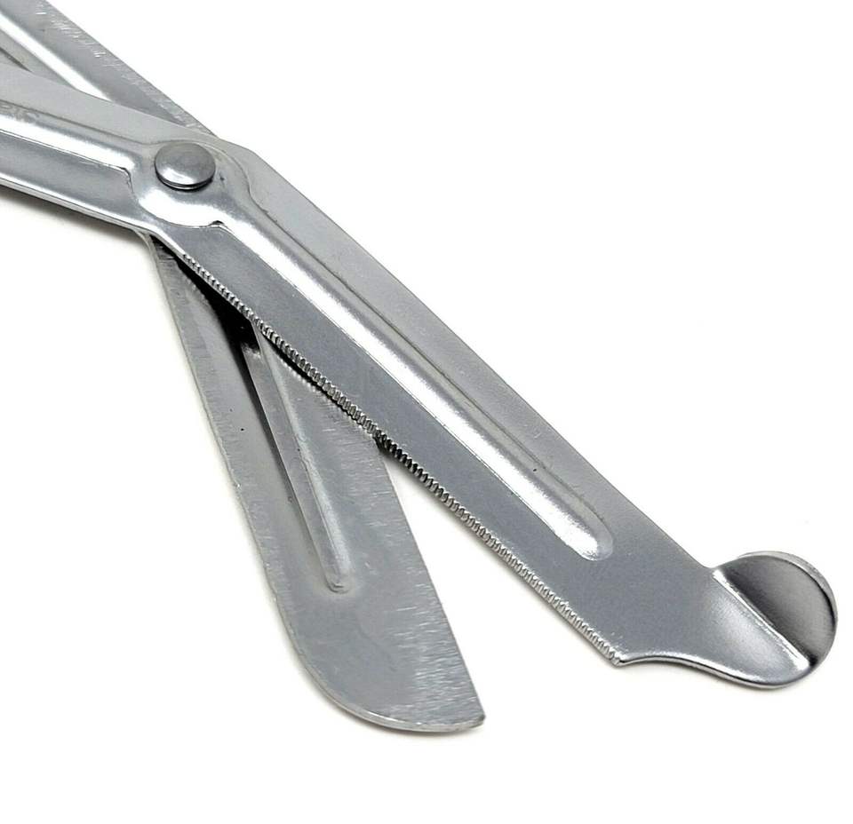 Ciseaux de coupe de pansement de premiers secours Ciseaux dentelés à pointe ronde Ciseaux de traumatologie à poignée de couleur bleu ciel 5.5 "Instruments chirurgicaux