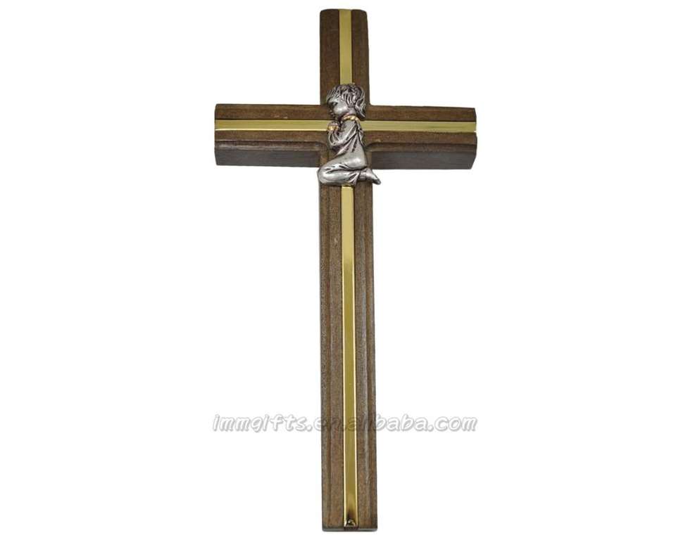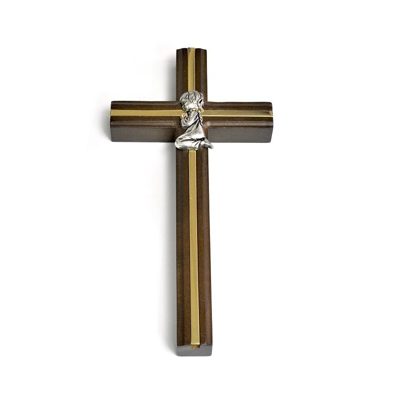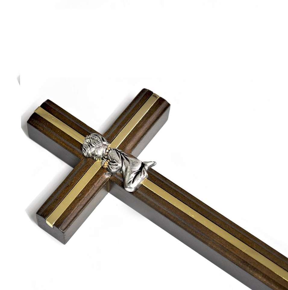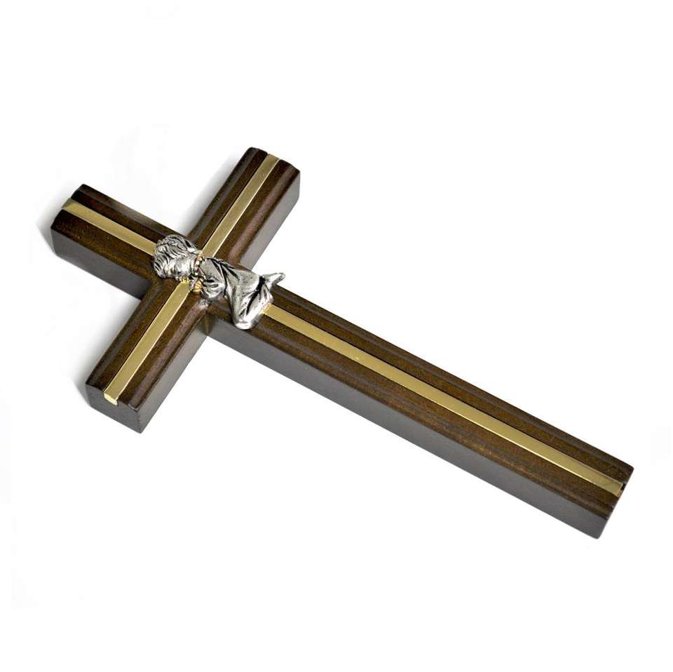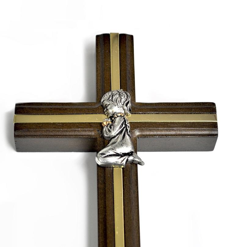 Figure de bébé fille croix en bois de première communion