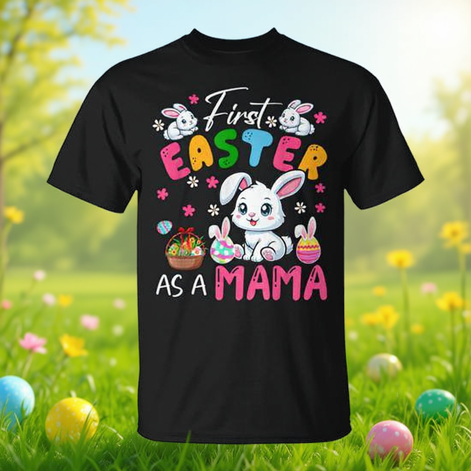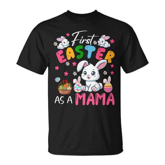 T-shirt à manches courtes et col rond pour femme adulte, impression numérique, First Easter As A Mama
