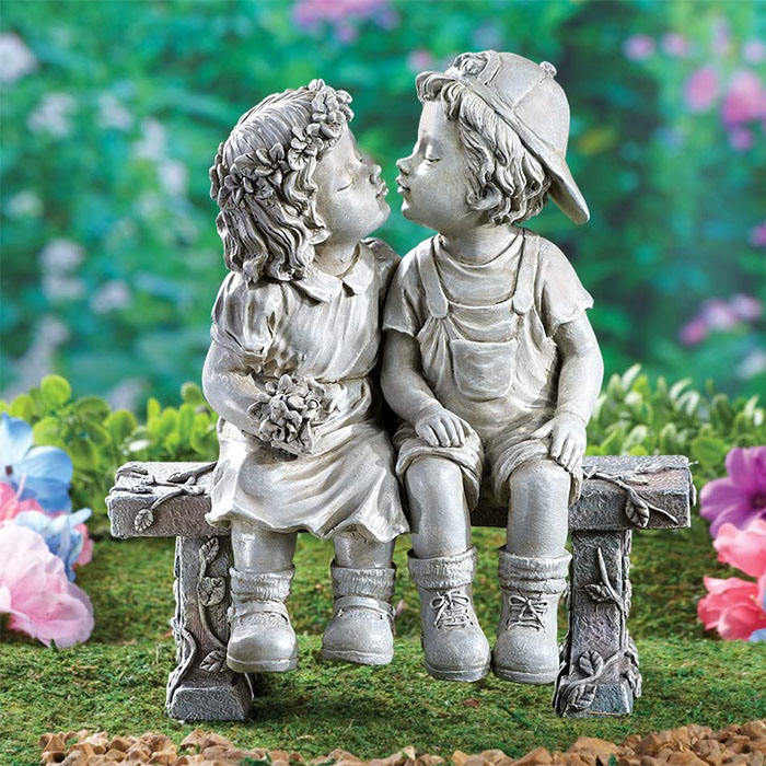Packing:Boy and Girl Garden Sculpture +white box+safety