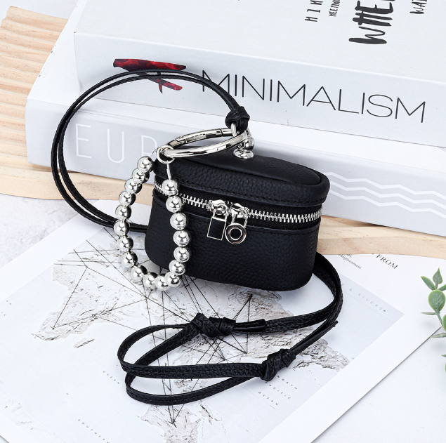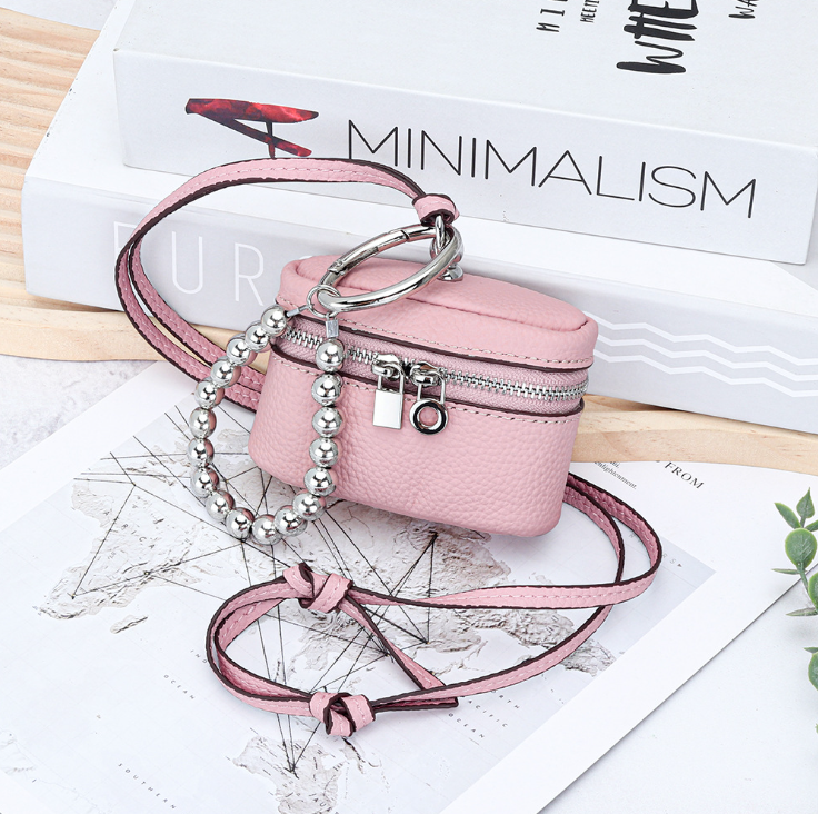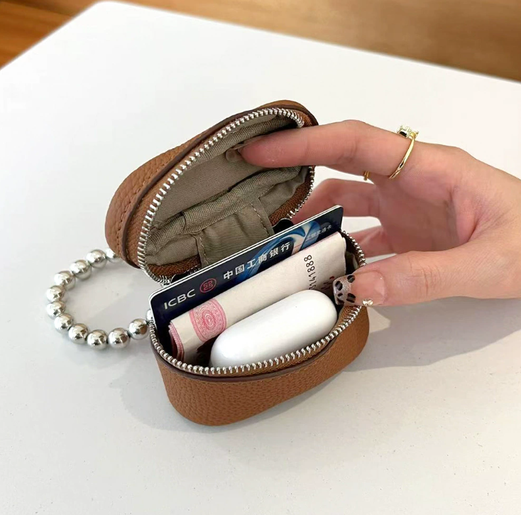 Petite bourse à monnaie portable en cuir de vachette première couche, style Ins, avec fermeture éclair, pour ranger rouge à lèvres et écouteurs