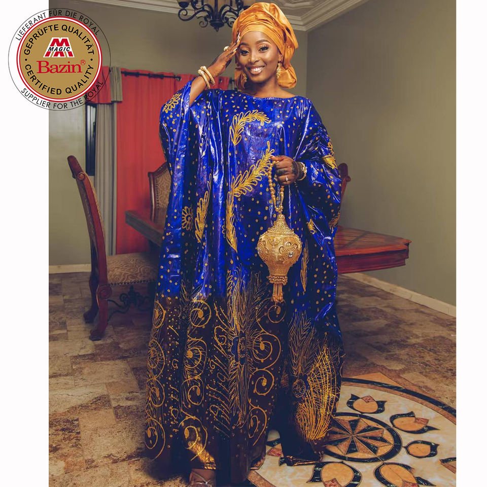 Robe de Mariée Africaine Traditionnelle Nigériane Bazin Riche Boubou Dashiki Imprimée Parfumée de Première Qualité