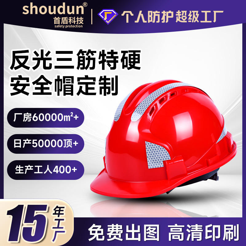 Casque de sécurité First Shield rouge réfléchissant pour chantier, protection de la tête, casque de chantier respirant résistant aux chocs