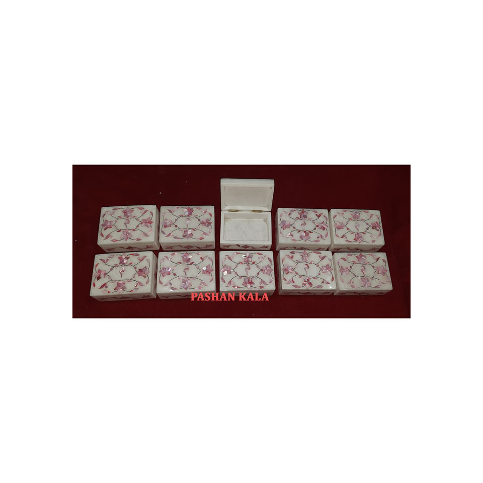 Première conception unique à bas prix poli à la main brillant naturel blanc marbre rose couleur nacre boîtes avec vente en gros