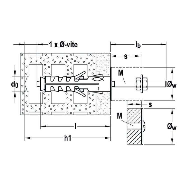 Bouchon en nylon Fischer SB 9/5 avec double vis M4 (50pcs)