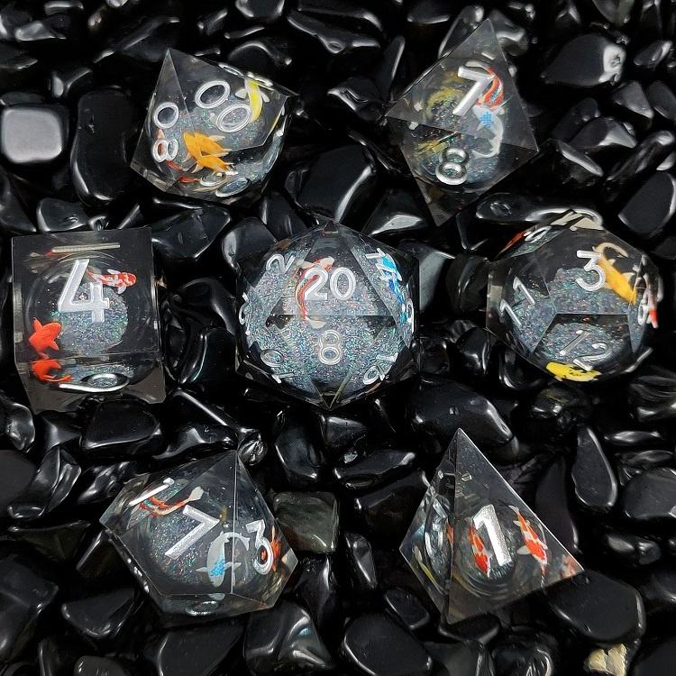 Fish Lucky Quicksand Blue Liquid Sharp Edge Jeu de dés en résine Cadeaux Ensemble de dés 7 pièces Donjons et Dragons