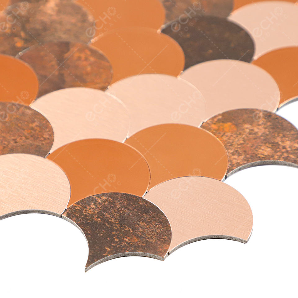 Panneau composite en aluminium effet miroir écailles de poisson mélange brun auto-adhésif mosaïque métallique carrelage mural pour usage intérieur