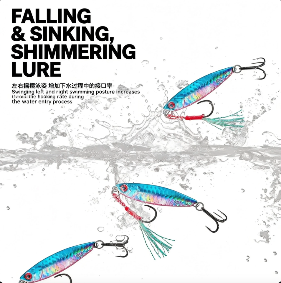 Leurre métallique texturé écaille de poisson, longue portée, chute lente, non peint, vierge, pour la pêche aux prédateurs en eau douce et salée