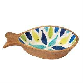 Fish Shape Fruit Bowl Acacia Wooden Bowl Printed Enamel Modern Design Serving Bowl and Fruit Bowl for Kitchenware