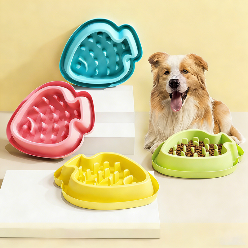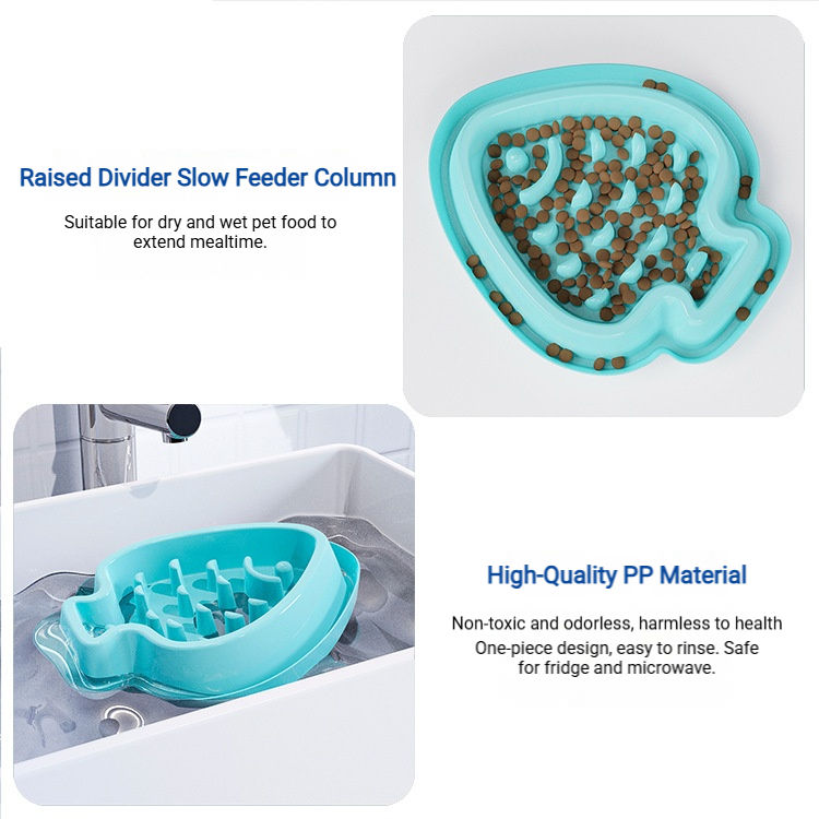 Bol anti-écrasement en PP en forme de poisson pour animaux de compagnie, bol à nourriture pour chat et chien
