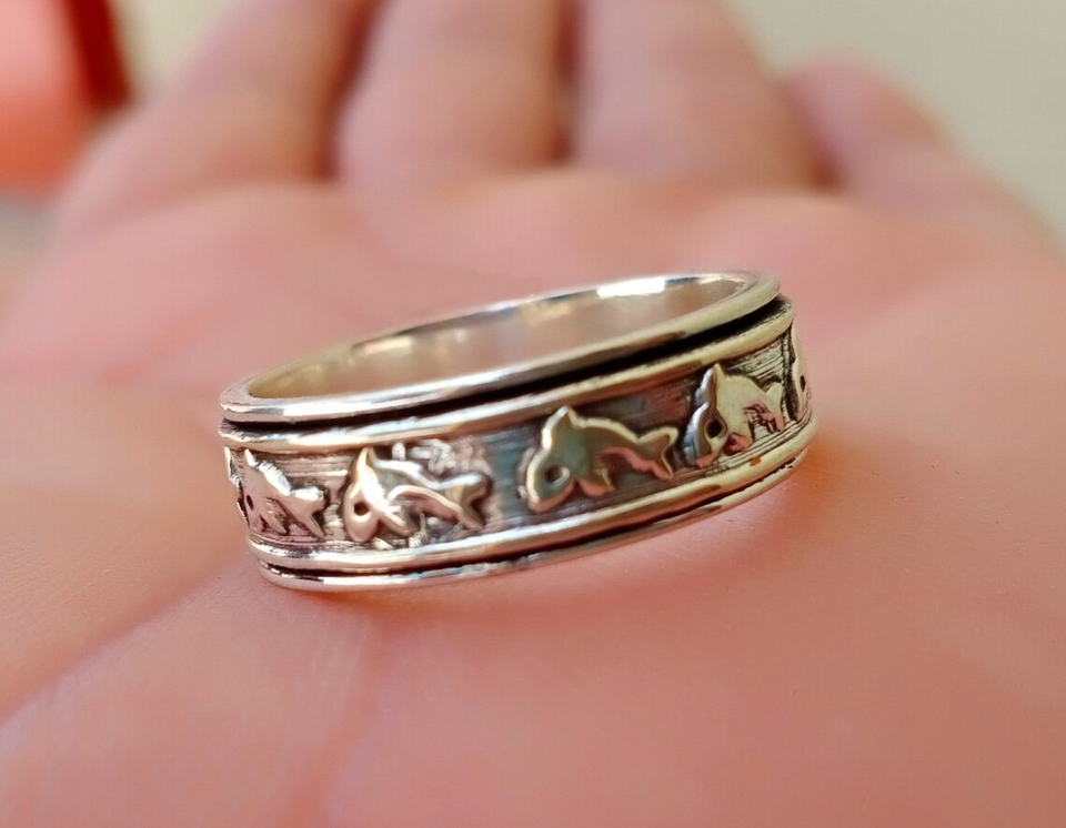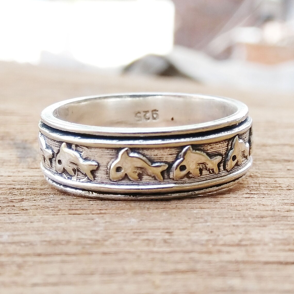 Bague Spinner Poisson, Bague Anti-Stress Océan, Bague Artisanale pour Soulager l'Anxiété, Bijou Vie Marine, Bague Spinner Bohème Tendance
