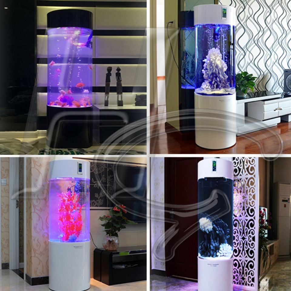 Aquarium cylindrique en verre transparent et anti-UV, taille personnalisable