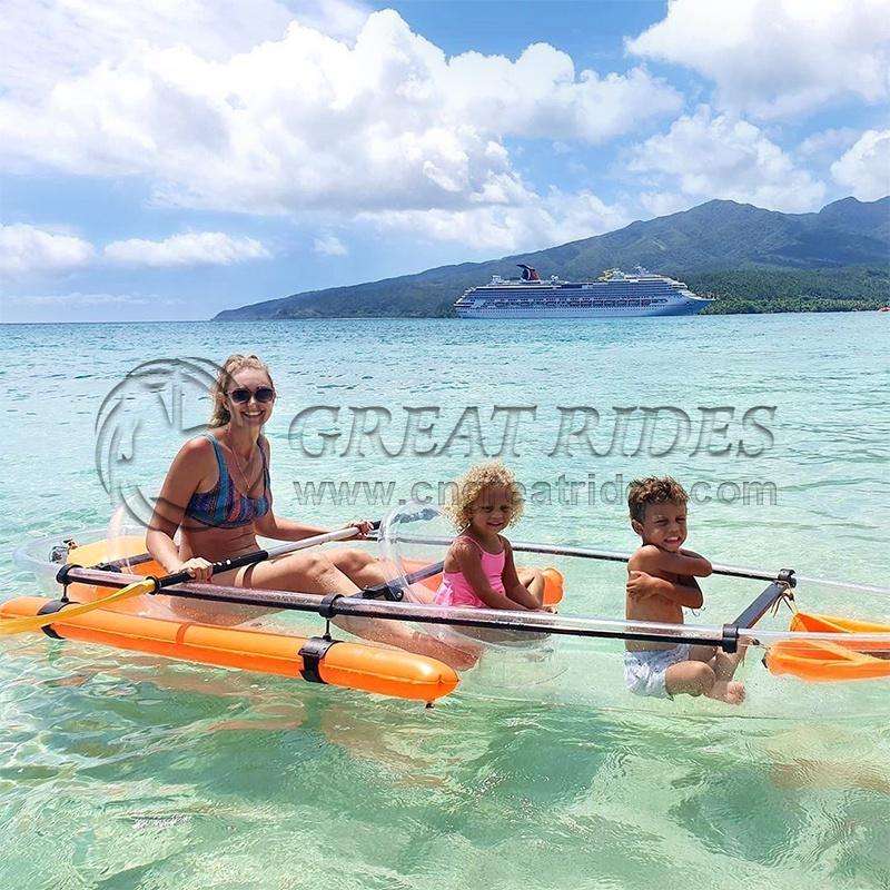 Emballage Standard d'exportation pour canoë à pagaie de bateau en plastique bon marché Kayak en plastique transparent à fond transparent pour 2 personnes