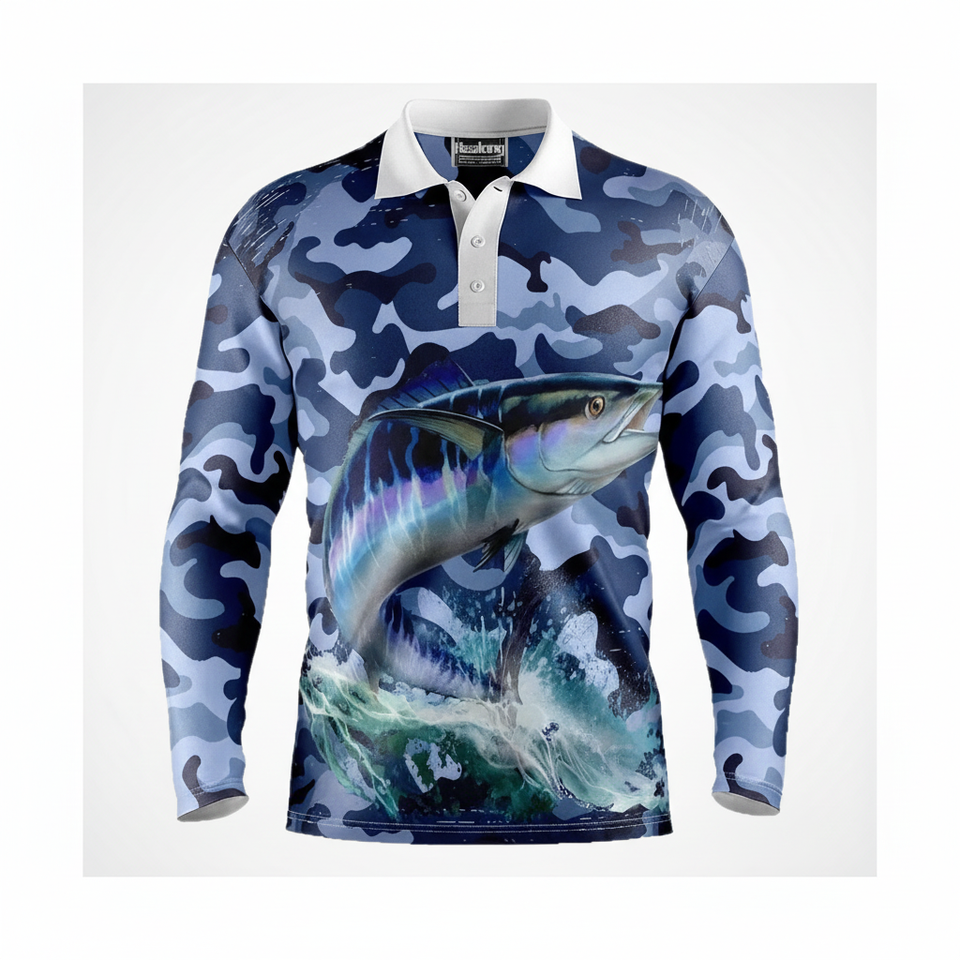 Pêche imprimé t-shirts Logo personnalisé à l'extérieur UPF50 + protection solaire séchage rapide sublimation impression à manches longues polo de pêche