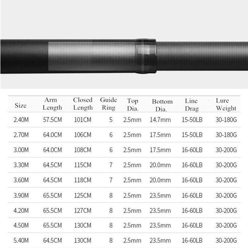 Canne à pêche 2.4m 2.7m 3.0m 3.3m 3.6m 3.9m 4.2m 4.5m 5.4m poteau télescopique à haute teneur en carbone pour filature