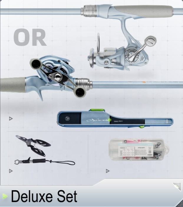 Canne à pêche et moulinet combo ensemble complet kit de pêche en fibre de carbone avec crochet, plomb, ligne, sac
