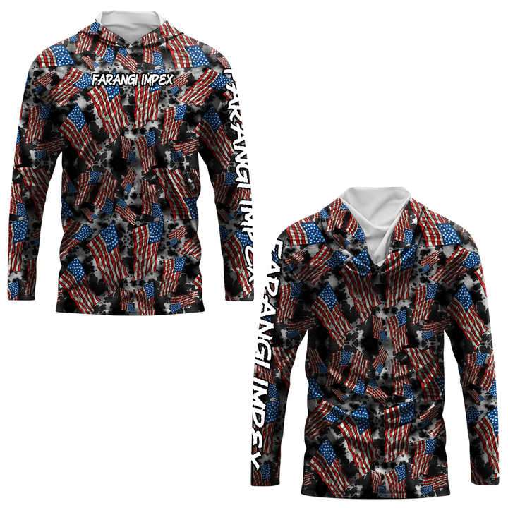 Custom USA Flag camo print Fishing Shirts Men Long Sleeve Hooded Mask Uv Protection Hiking Jerseys Performance Quick Dry 2026