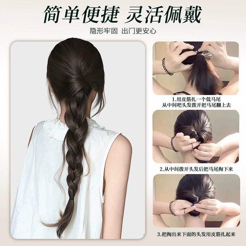 Extension de cheveux tressée en queue de poisson, longue, brun foncé, tricotée à la main, en fibre haute température, pour femme, style queue de cheval