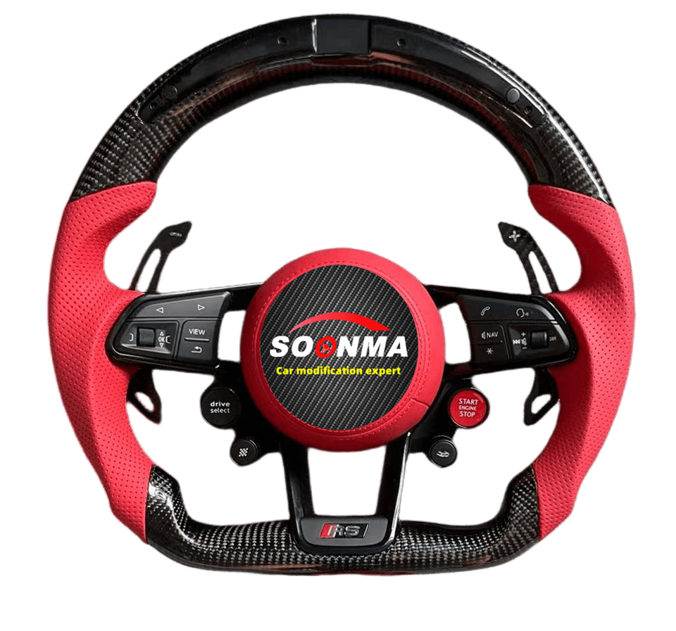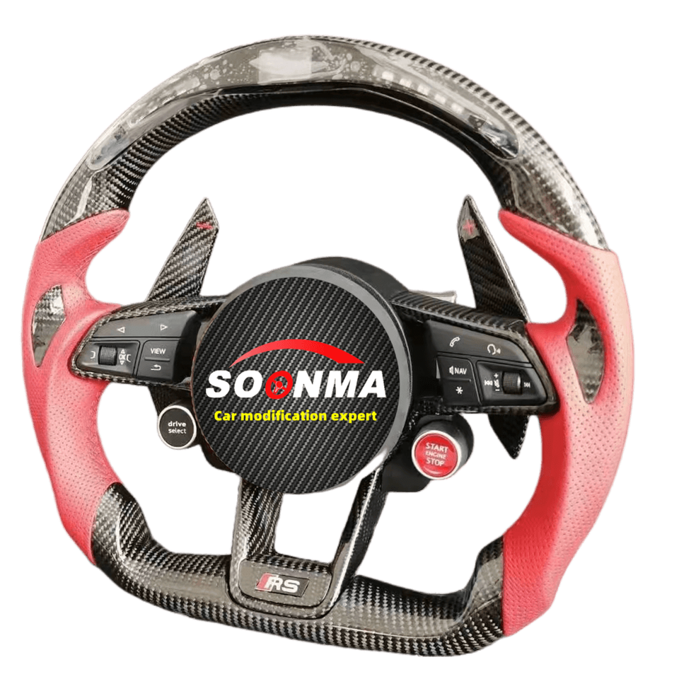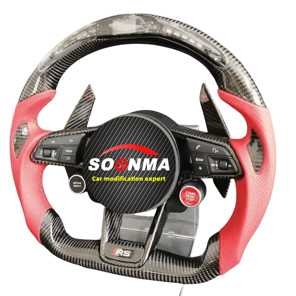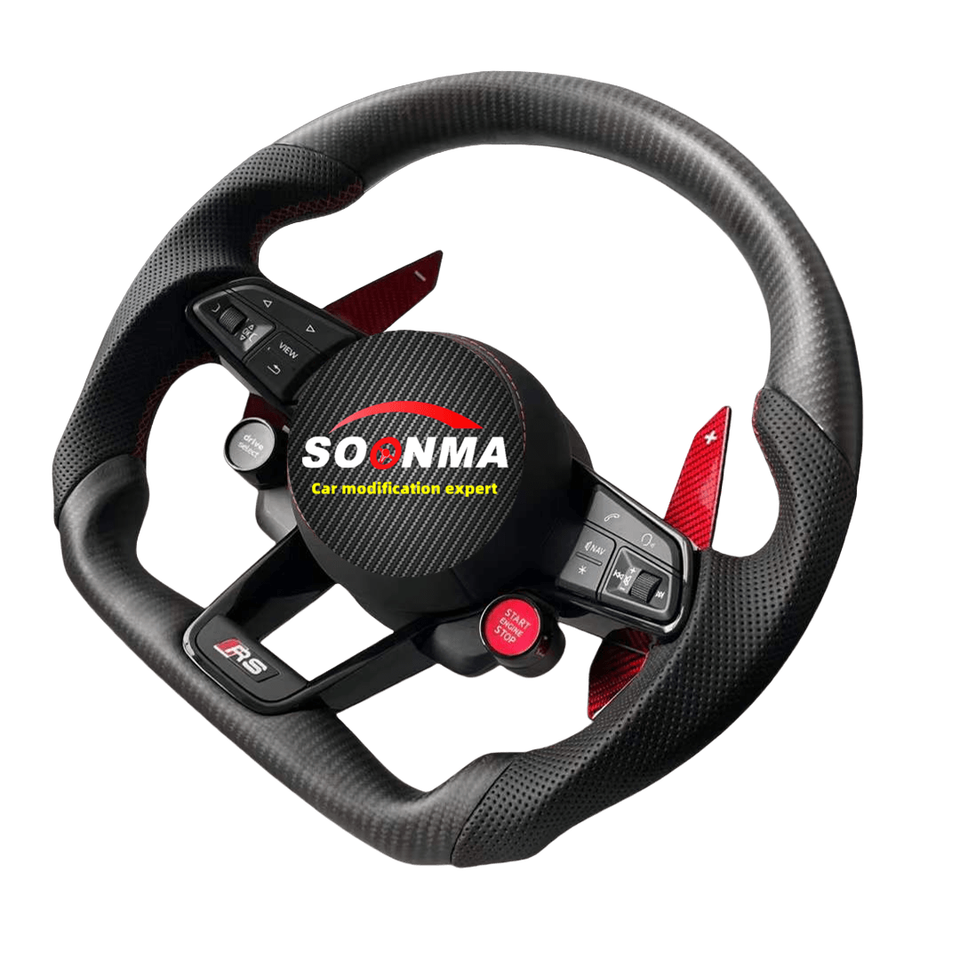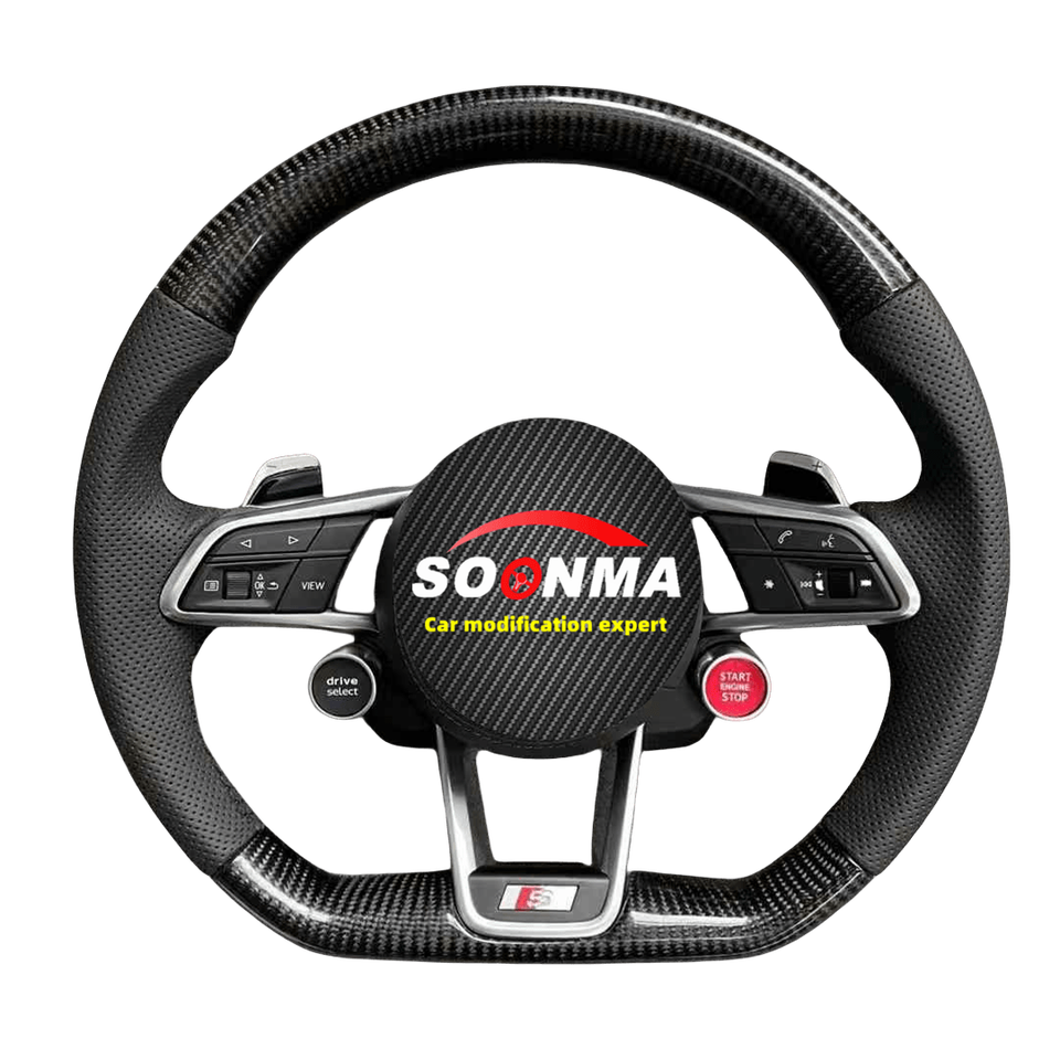 Volant de voiture personnalisé en cuir véritable et fibre de carbone, compatible avec Audi R8 A3 A4 A5 A6 A7 S3 S5 Q5 Q7 TT TTs RS RS3 RS5 RS7
