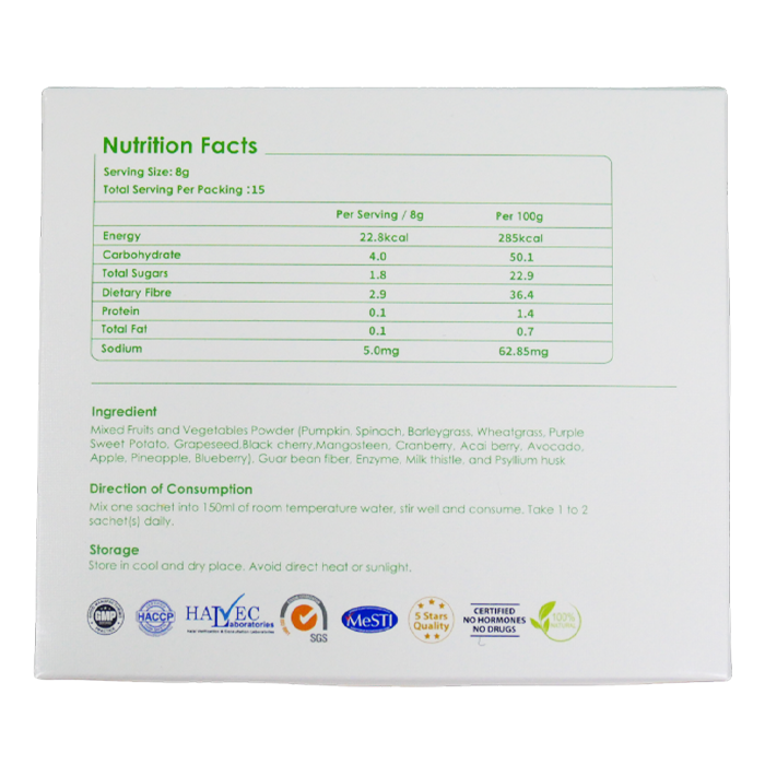 Main Ingredient:Fruits Vegetables Beans Psyllium Extract, High Functional Enzyme