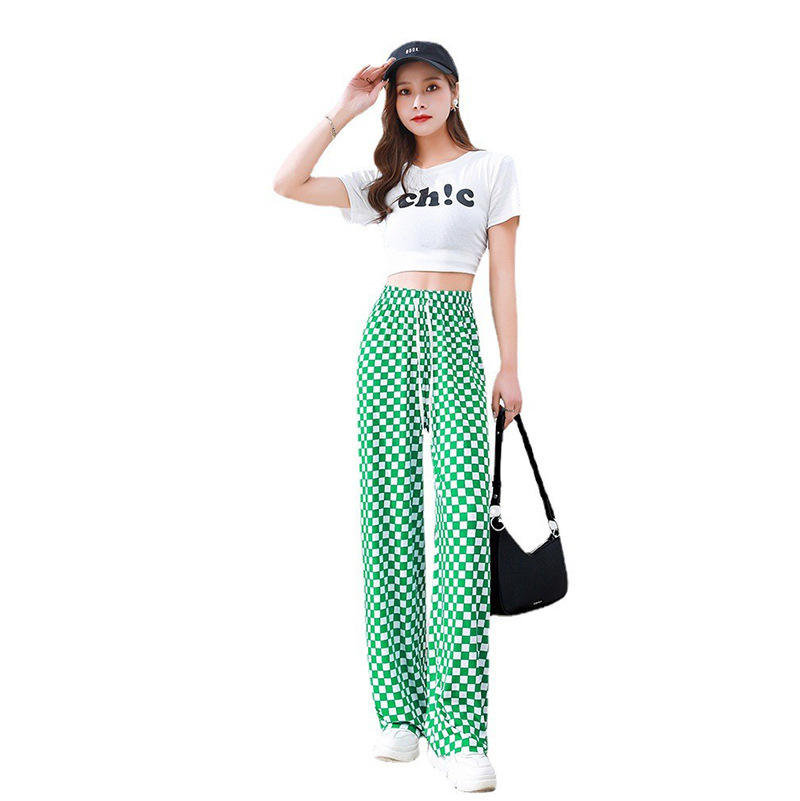 Fitspi Women's Wide Leg Pants Summer Thin High Waist Drooping Slimming Mopping Anti Mosquito Straight Leg Pants