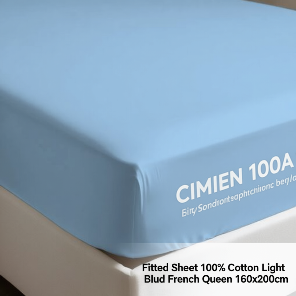 Drap-housse 100% coton bleu clair, taille Queen française 160x200cm