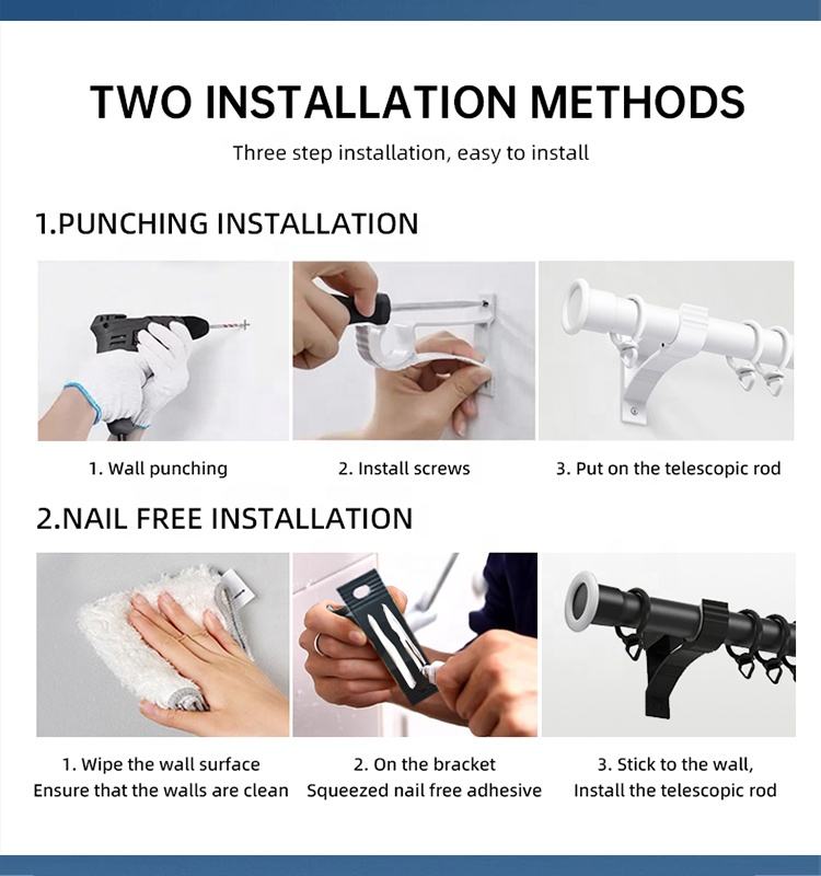 Fitting Room Extendable Curtain Rods and Rails Metal Bay Window Adjustable Curtain Rod Without Drilling