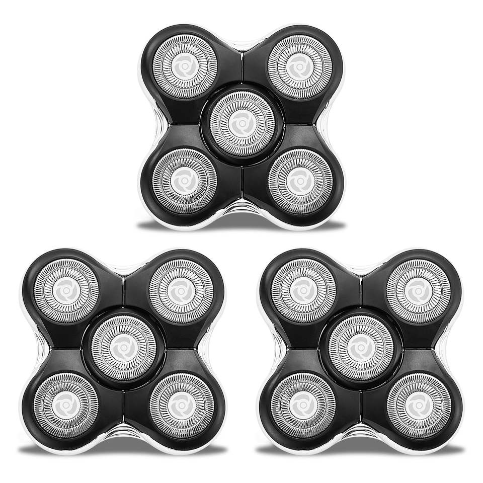 Têtes de rasoir de rechange à cinq lames en plastique, lavables, spécifiques au visage, pour rasoir électrique rotatif, lot de 3, pour usage en camping-car, pour hommes