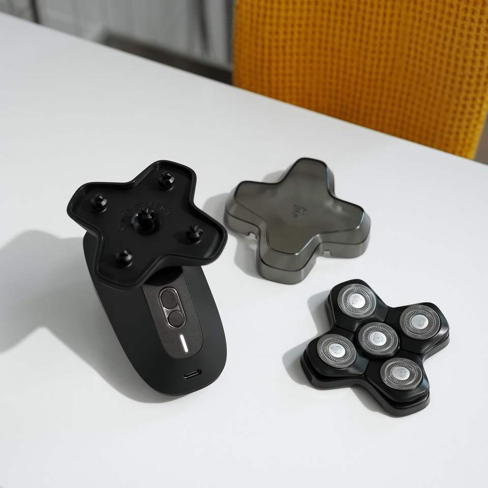 Rasoir Électrique Rotatif à Cinq Lames pour Hommes, Étanche IPX7, Recharge Sans Fil USB-C, Compatible Visage et Corps, Lavable
