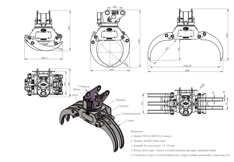 Suitable for excavator(ton):10ton-15ton excavator grapple