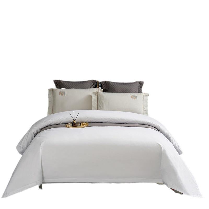Parure de lit en satin pur coton 60 fils, personnalisable, pour hôtel cinq étoiles, maison d'hôtes et gîte, drap et housse de couette blancs