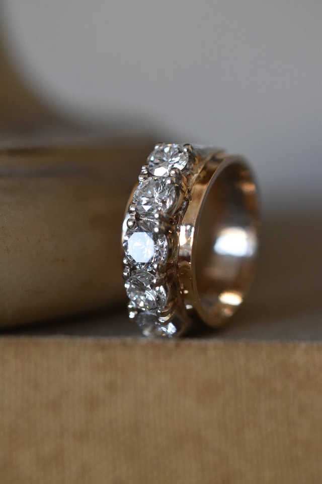 Cinq pierres grappe mariage 1.65 Ctw coupe ronde laboratoire cultivé Dia bague de fiançailles épaisse bande d'éternité